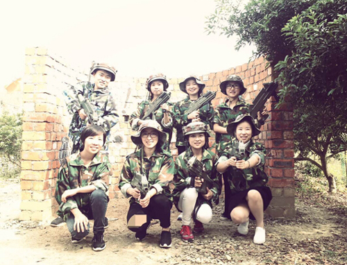在训练基地,团员们兴致盎然,骑马,自助烧烤,真人CS,靶场射箭,非常热闹。团员之间团结互助,友善谦让,共享美味。