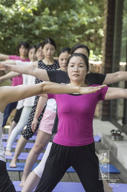 7月26日上午,在顾问孟妤薰的组织和带领下,“瑜伽兴趣小组”成员相聚德清“裸心谷”开展户外瑜伽活动。