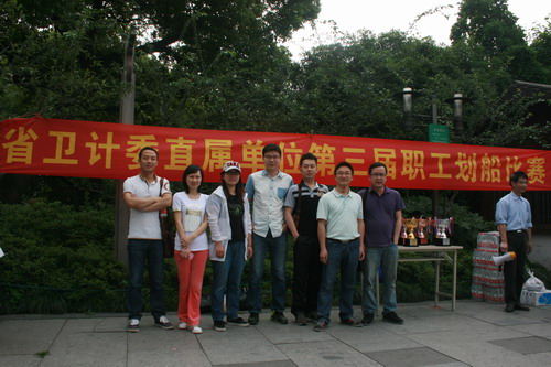 划船比赛是一个由多人共同完成的项目,它集力量、技巧、耐力于一身,是体能与技术的完美结合,光靠队员个人的实力是不能取得好成绩的,需要团队合作、作战策略。此次划船为5人一船,分舵手1名,划手4名。比赛开始后,队员们赛前虽然未经过系统的训练,但是他们本着向身边榜样-上柏住院部团队学习的精神,忍着手上血泡的剧痛,齐心协力,奋勇向前划行,在20几支参赛队伍中,取得了不错成绩。