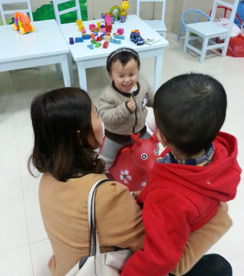 福利院的工作人员接待了我们,并把我们带到了小孩子玩耍的地方,有四、五个小孩子正在那里玩耍。这里就像一个小型的幼儿园,但与幼儿园不同的是,这里的小孩子大部分都是智障儿童或者是脑瘫痪者,只有一个小孩很像正常人,也非常地活泼可爱,但是因为耳朵发育不太好,她的父母亲就狠心地把她扔在这里。我们几个人和她们交流沟通、一起玩耍,很少笑的脑瘫患者也露出了久违的笑容,那原本她们应该拥有的快乐在这一刻她们真的得到了,我完全感受得到。
