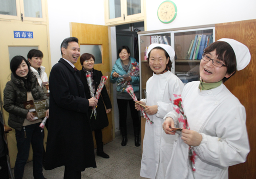 3月8日,一个女性的节日,一个温馨的节日。在第102个“三八”国际妇女节到来之际,所长施培武、党委书记严丽英、党委委员王晓云及工会、妇委会负责人慰问了在“三八”节期间坚守工作岗位的全体女职工,为她们送去节日的祝福,并送上鲜花和巧克力对她们的辛勤劳动表示感谢。