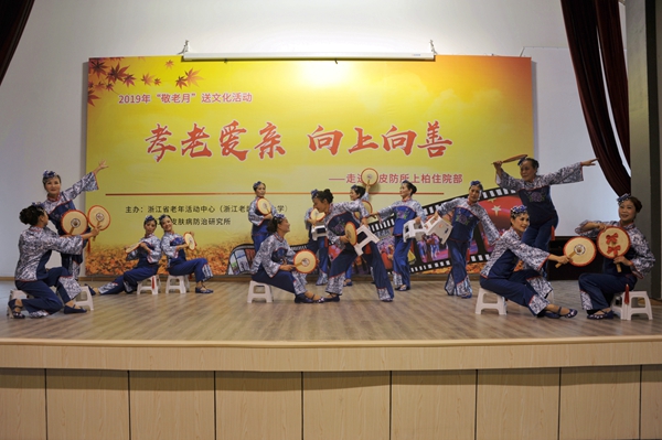 孝老爱亲,向上向善。日前,由浙江省老年活动中心(浙江老龄文艺大学)倾情打造的“敬老月”文艺汇演,走进省皮肤病医院上柏住院部,为全体麻风休养员送上了丰盛的精神大餐。院党委书记姚强及上柏住院部医护人员一同观看。 ..