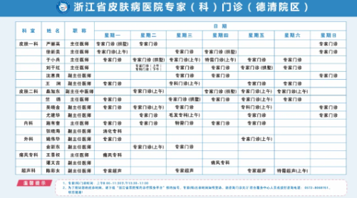浙江省皮肤病医院(德清院区、拱墅区综合门诊部)诊疗信息一览