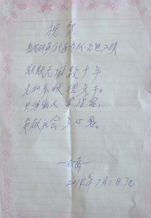 我所离退休职工一直很关注单位的建设与发展,喜闻我所上柏住院部先进事迹在全国范围内大力宣传,中央、省委等领导接见了报告团成员,号召广大卫生计生工作者学习上柏住院部先进团队坚守使命、坚定信念、精诚敬业、树仁立..