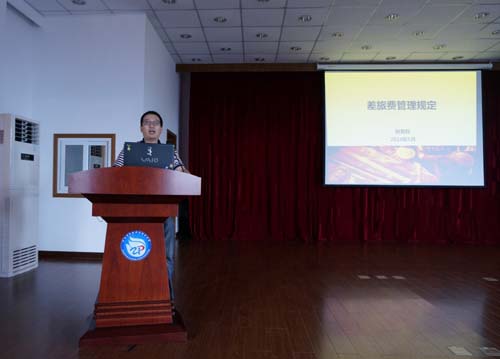 为加强和规范工作人员国内差旅费管理,保证出差人员工作和生活需要,推进厉行节约反对浪费,完善公务活动管理制度,结合我所新差旅费管理规定实施两个月来的实际情况,7月3日,财务科科长王爱英在六楼学术报告厅向单位职工对本..