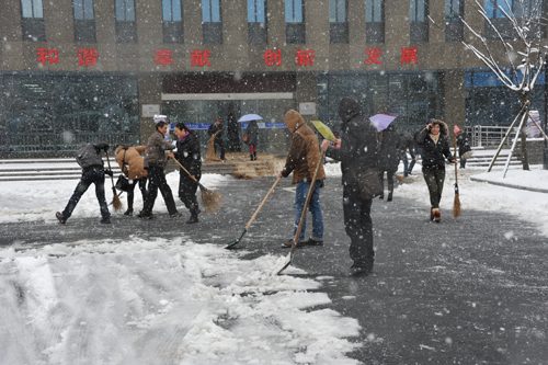 大雪纷飞扫雪忙(图)
