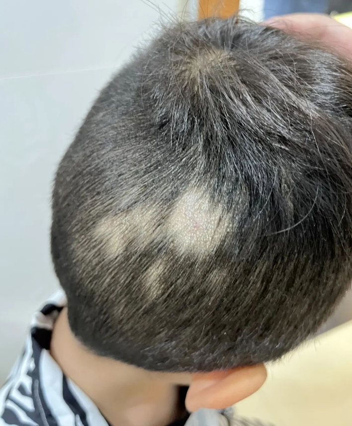 放暑假了,快乐的假期还没过几天,小明(化名)的头发却秃了几块,头皮上还有些鳞屑,而且脱发范围还渐渐变大,这可把父母亲急坏了。