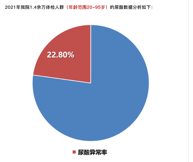 我国高尿酸血症的患病率为13.3%,患病人数超过1.77亿,是继高血压、糖尿病后第三大代谢类疾病。高尿酸血症可导致痛风,中国痛风的患病率为1.1%,患病人数已超过1700万。