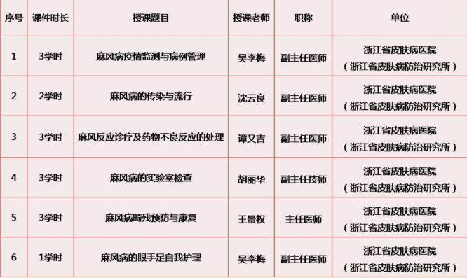 好消息!浙江省皮肤病医院2项省级继续教育项目远程视频课程已上线!不出家门就能学习,获得学分啦!课程具体信息如下: 课程一:《麻风病防治技能培训班》 1.项目编号:2020-12-07-003,负责人:吴李梅副主任医师 2.线上学..