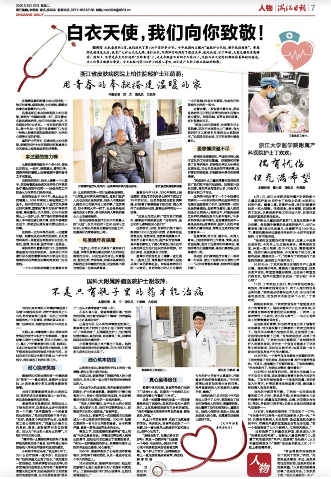 今天,浙江日报聚焦省皮肤病医院,致敬上柏住院部白衣天使!..