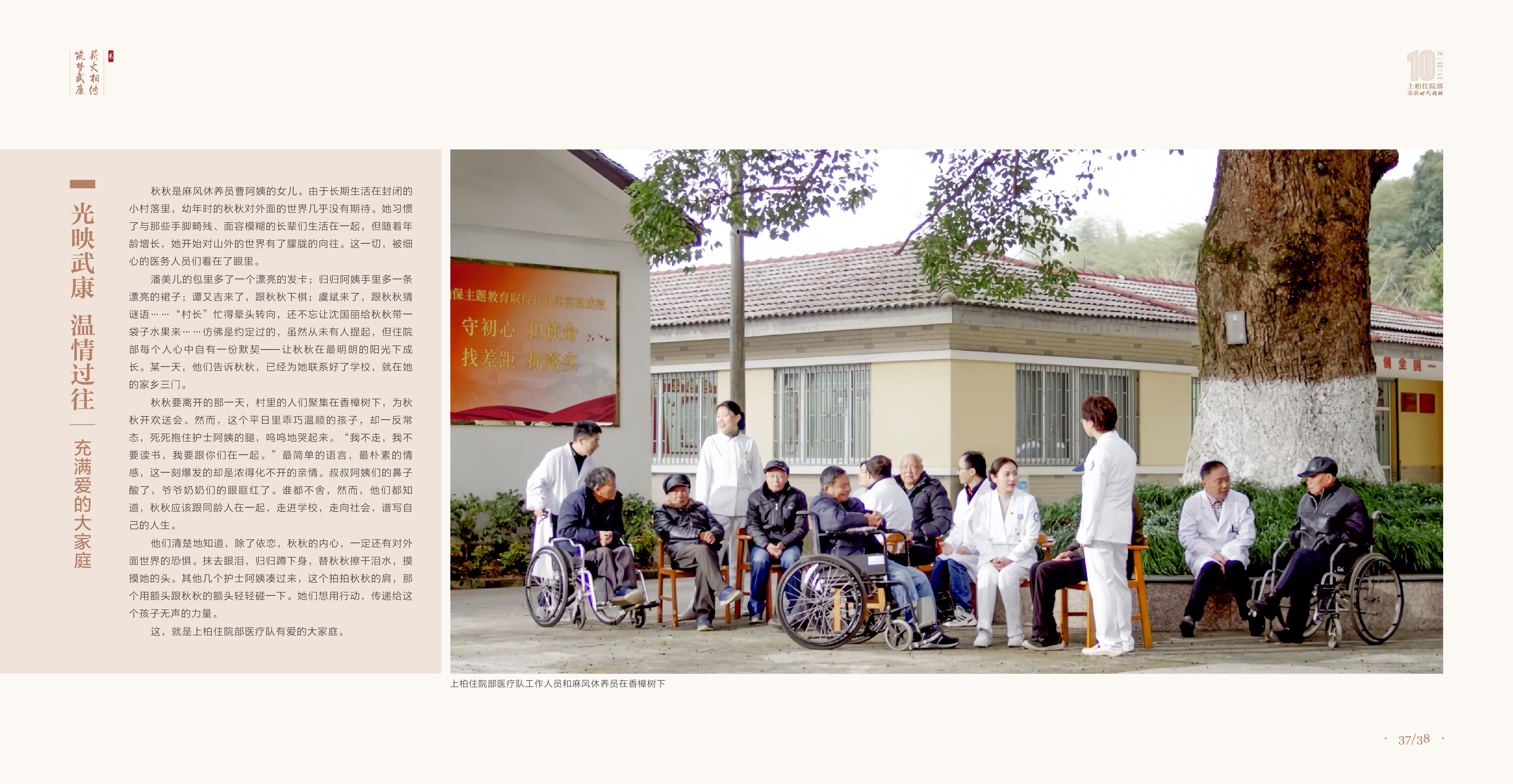 1952年,浙江省麻风病院正式建成启用以来,一代又一代的麻风病防治工作者在艰苦的环境下,扎根山区,默默奉献。他们十年如一日,倾尽所有,宛如一道光,照亮了那些病人痛苦的人生,在生理与心理上给予他们生存下去的希望和力量。真心真情,让他们不是亲人胜似亲人。几十年间,医患故事,点滴于心,蕴含着不一样的温情光芒。