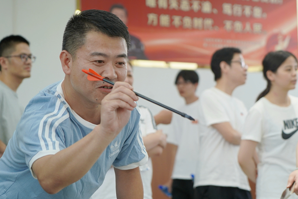 掷飞镖区域,参赛者们屏气凝神,全神贯注地瞄准靶心。随着手臂的挥动,一支支飞镖划精准地落在标盘上,发出清脆的声响。