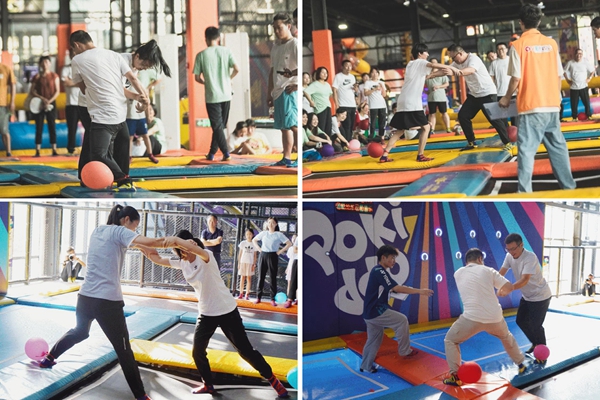 一个个带着气球的选手东窜西跳,锁定目标,直冲上前!他们一边咧着嘴笑,一边灵活闪躲。