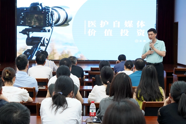 5月29日晚上,浙江省皮肤病医院特邀浙江卫视著名主持人王帅来院分享宣传工作心得与感悟——《医护自媒体投资价值》。全体中层干部、各科室宣传员、宣讲团成员等70余人聆听讲座。活动由党委委员、副院长沈云良主持。