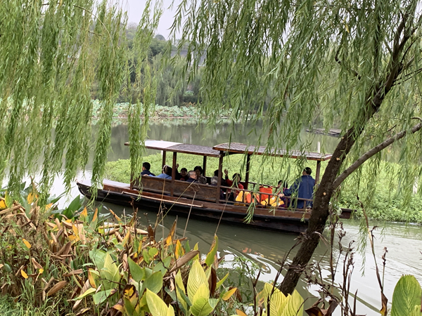 活动当天,大巴车载着老同志们向目的地出发。一路上,欢声笑语此起彼伏。在蠡山沄居,老同志们漫步在园林中,或在花海打卡、或游览文财神庙范蠡祠景区、或找一找当年下乡当知青的足迹,也可当一回“潮”人——穿汉服体验时空穿越。下午,大家三三两两乘坐小船,欣赏沿途度假村内小桥流水人家的生态景观,别有一番韵味。