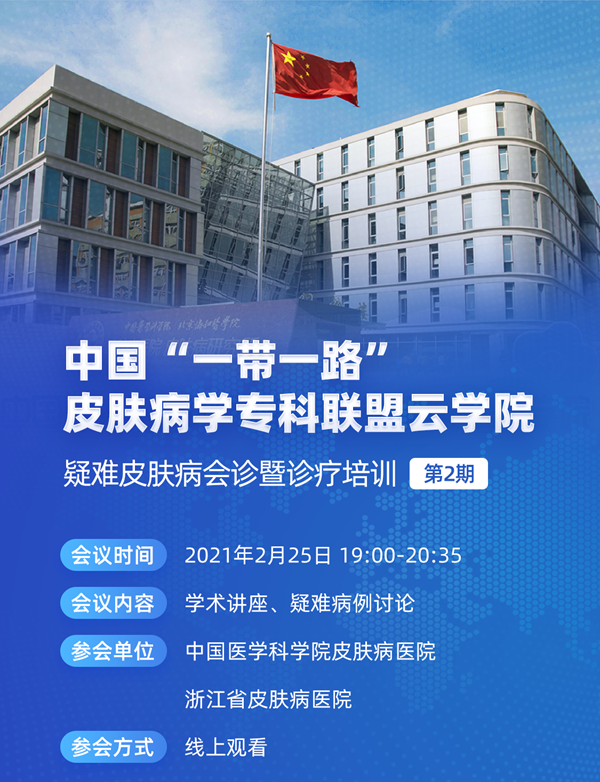 为进一步提高疑难皮肤病的临床诊疗水平,2月25日晚,中国“一带一路”皮肤病学专科联盟云学院疑难皮肤病会诊暨诊疗培训(第2期)如期在线召开,全国3300余人次皮肤科同道参与直播学习。浙江省皮肤病医院作为全国首家省级皮肤科专科医院参与协办,并取得圆满成功。