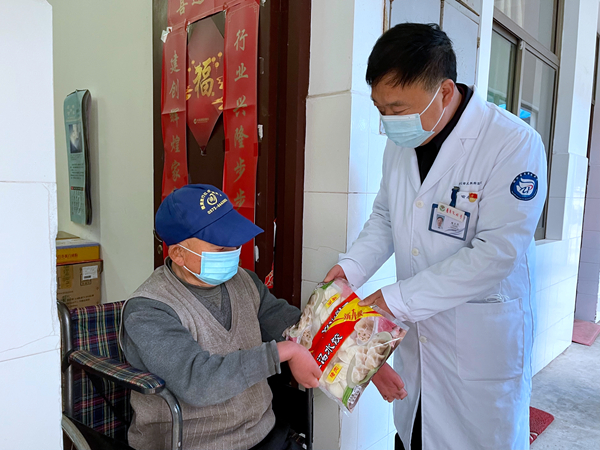 院领导和上柏住院部医护人员为麻风休养员们送上了春节慰问品,恭祝他们新春快乐,幸福安康。同时叮嘱休养员们,自觉遵守麻风村的封闭管理模式,不外出不聚集,注意个人卫生,保持房间通风,勤洗手,安心疗养。