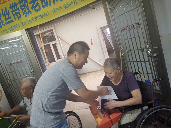 当天上午,第三党支部一行8人带着精心准备的慰问品赶到了慈溪麻风村。在慈溪皮肤病防治院的组织下,可自己行走的麻风休养员不约而同的走出家门,来到活动现场;行动不便的麻风休养员在党员的帮助下,坐着轮椅来到现场。在温馨的氛围中,党员们把慰问品一一发到20余名驻村麻风休养员手中,同时也把最真挚的祝福带给他们。