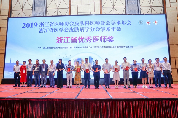一分耕耘,一分收获。会上,我院皮肤科专家严丽英和于小兵担任病例报告专场及病理专场两场主持人,竺璐和谢碧波分别在病例专场和病理专场上台交流发言。我院选送的“皮肤科故事”荣获三等奖,选送的病例荣获省年会十大“优秀电子壁报”,并成功加入了“浙江省医学会银屑病诊治联盟”。此外,我院多名医师载誉而归,谢碧波被评为2019年度“浙江省皮肤科优秀医师”,沈利玲当选为省医学会皮肤病分会青年委员,王涧当选为银屑病学组委员,刘干红当选为真菌学组委员。