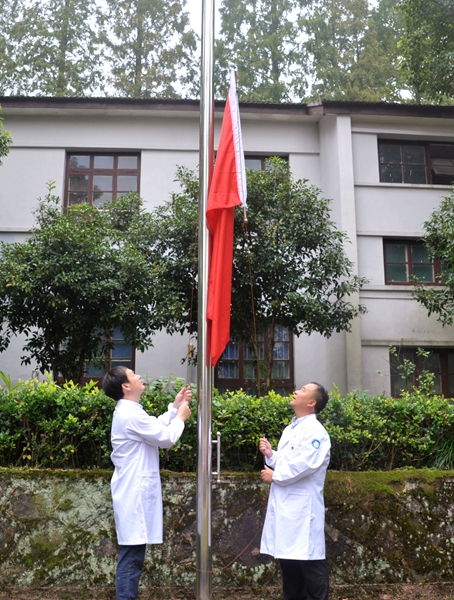 9点30分,伴随着雄壮的《义勇军进行曲》响起,鲜艳的五星红旗冉冉升起,全体人员行注目礼,向伟大祖国致以最高的敬意。升旗仪式后,党委书记姚强指出,在举国同庆的日子里举行升旗仪式,是一次特殊的爱国主义教育,希望医院职工和麻风休养员能够永远保持热爱祖国、忠于祖国、奉献祖国的爱国热情,共同祝愿伟大的祖国更加繁荣昌盛。