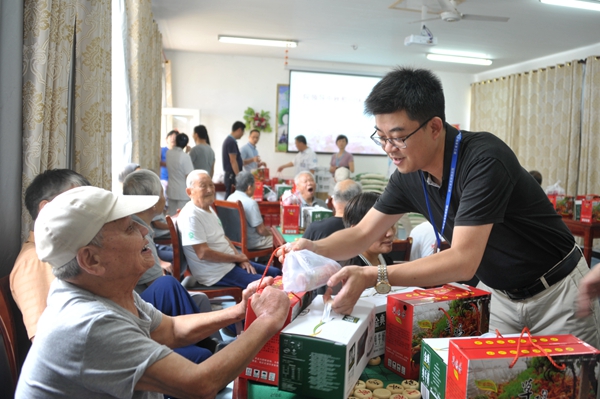 随后,全体慰问成员行动起来,将中秋月饼、牛奶、鸡蛋、大米等慰问品逐一送到麻风休养员的手中,大家还不断叮嘱休养员趁热吃月饼,感受团圆节的温暖。“中秋节的问候,每年都有,真好。”休养员王大爷乐呵呵地说着,便提着月饼走向贴着“福”字的家。