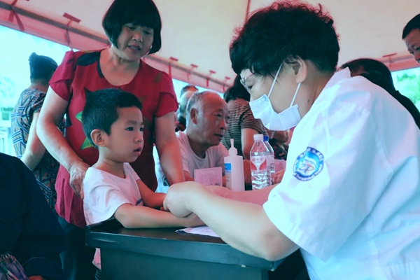7月5日,革命老区送医下乡活动在衢江区灰坪乡举行。此次活动由浙江省革命老区开发建设促进会、浙江省预防医学会和衢州市政协联合主办。省皮肤病医院工会主席、主任医师严丽英作为医学专家和党员,为灰坪乡群众“送健康”。
