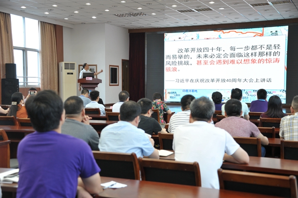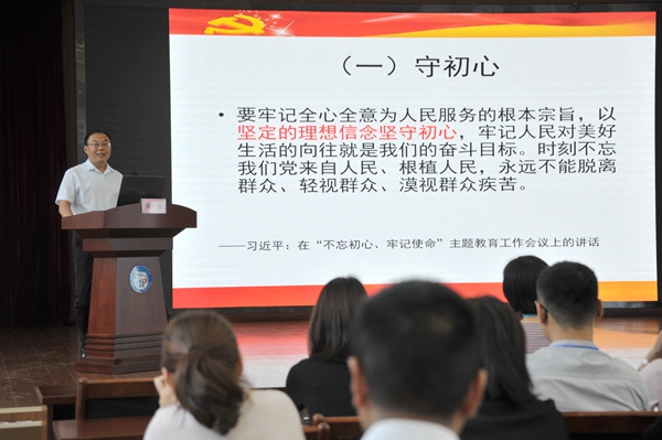 会上,刘勇教授从党史入手,生动演绎了中国共产党诞生以来克服艰难险阻,团结带领人民群众走向胜利,谱写中华民族自强不息、实现伟大复兴的光辉历程。同时,运用大量信息资料和精彩案例,全面、系统、深入地解读了“准确把握主题教育的总体要求、深刻领会主题教育的关键内容、坚持问题导向努力使主题教育取得最好成效”三大方面的内容。最后用“先之,劳之”四个字,勉励全体党员干部发挥先锋模范带头作用,走在前头,干在实处。