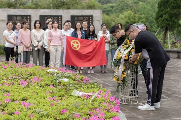 开展以“祭革命忠魂,学爱国情怀”为主题的祭扫活动。4月28日,所团总支组织20余名青年团员利用午休时间徒步至德清县革命烈士纪念碑,为革命烈士敬献花篮,感受革命先烈矢志不渝的坚定信念和爱国情怀。青年团员们还在团总支书记王羚的带领下重温了入团誓词。