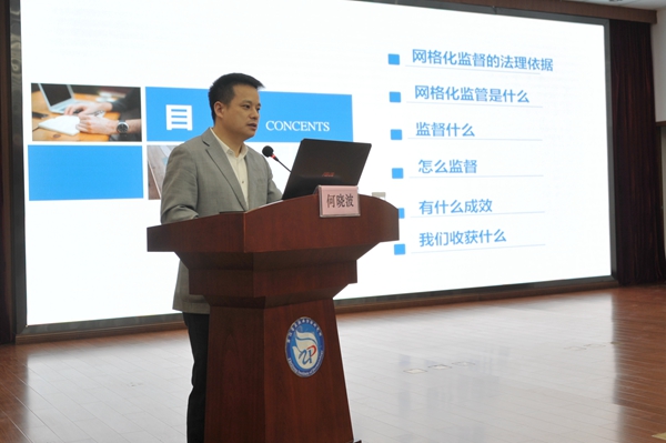 何书记从网格化监督的法理依据、网格化监管是什么、监督什么、怎么监督、有什么成效和我们收获什么等六方面,对网格化监督管理工作进行全面梳理和详细介绍。