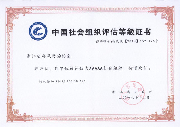 喜讯!浙江省麻风防治协会获评5A级社会组织