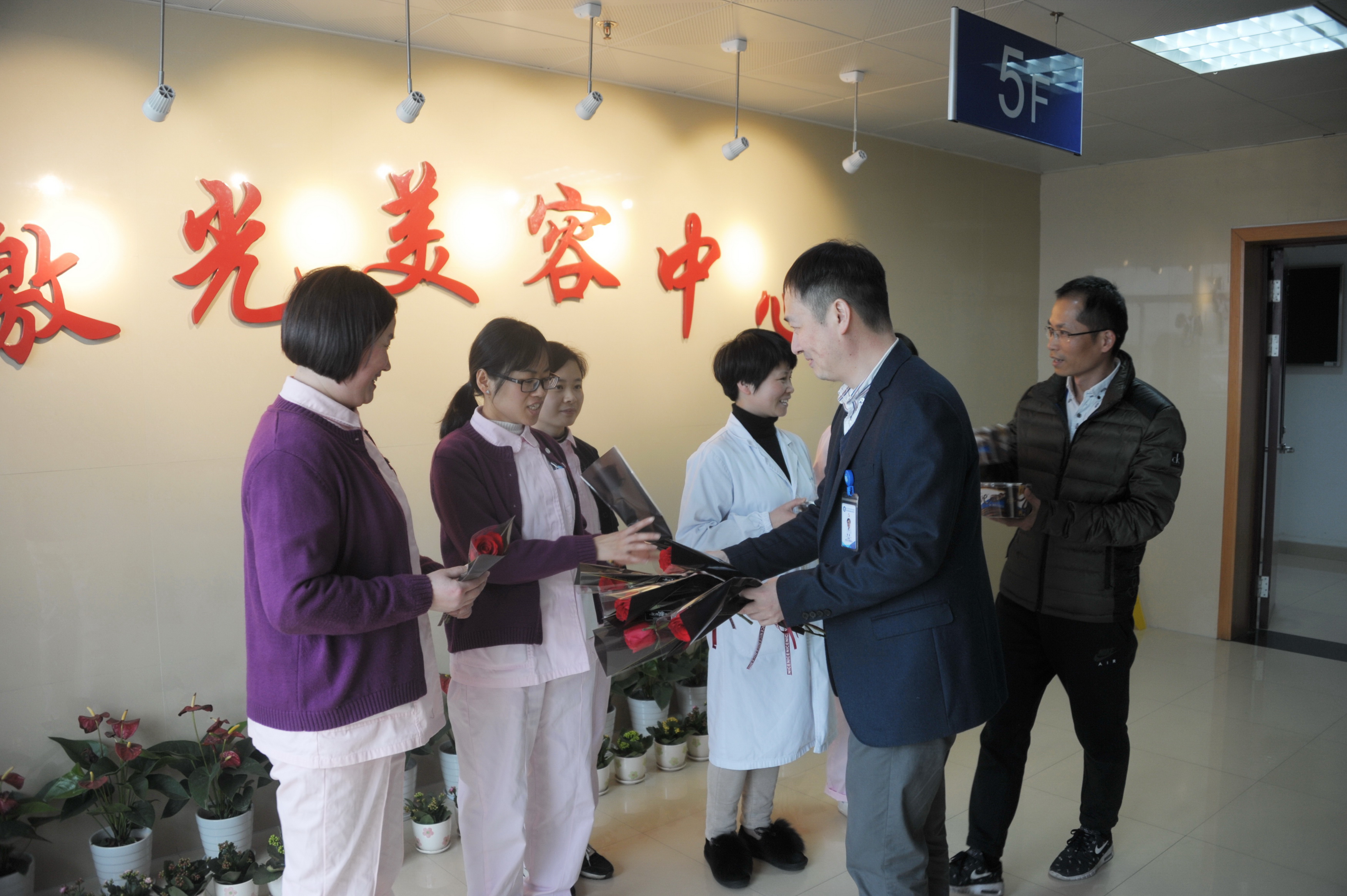 3月8日,在第108个“三八”国际劳动妇女节到来之际,院长姚强、党委书记严丽英带领我院领导班子和所妇委会工作人员到各个科室,慰问在岗工作的女性职工,为她们送去了鲜花和巧克力,并送上了节日的祝福和问候。