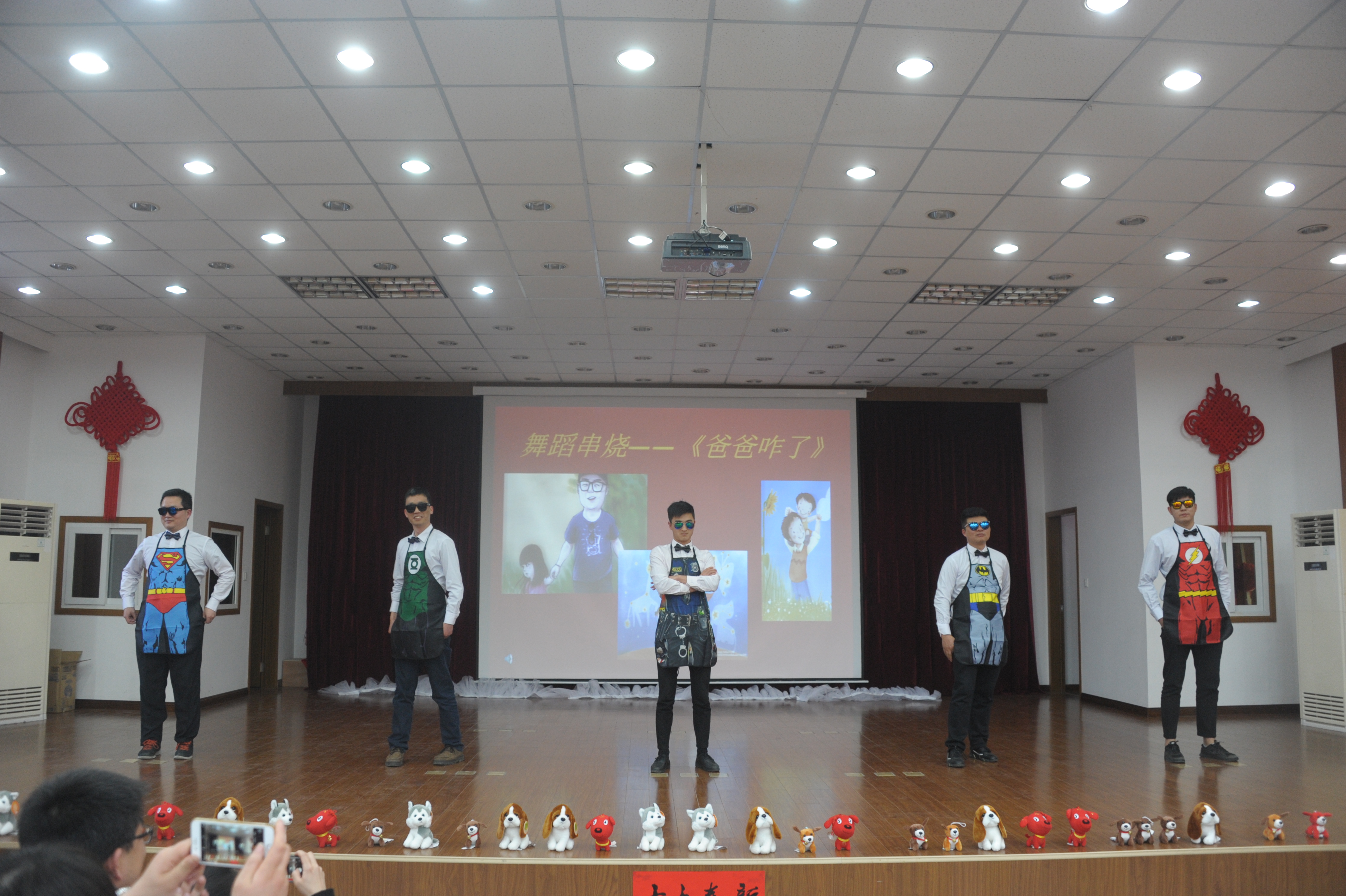 外科、护士组用风趣幽默的舞蹈串烧《爸爸咋了》表达了浓浓的父爱。五位长腿欧巴,用夸张的肢体语言,顿时赢得全场爆笑。