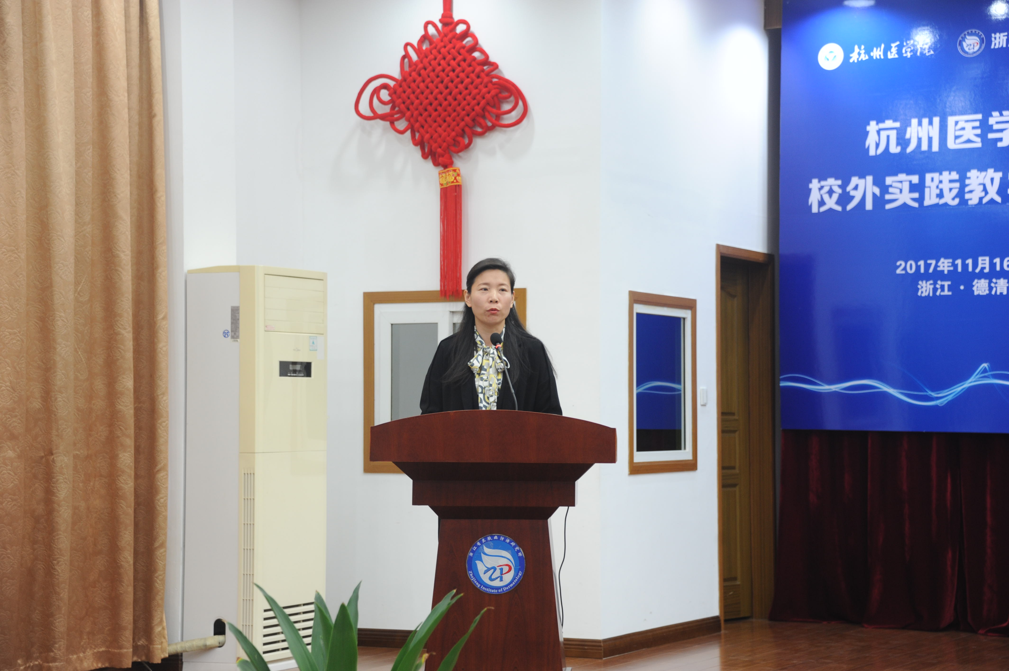 金芳副处长代表省卫计委疾控处向杭州医学院、宁波大学医学院和我院共建实践教学基地表示祝贺。她指出此次签约共建是院校为医学生提供更多实践机会与学习交流平台的一项重要举措,也是实现资源共享、优势互补、共同进步的一个重要方向,希望我院和两所高等院校以此次共建为新的起点,切实加强临床与实践教学水平,为全省培养更多优秀的医学人才。