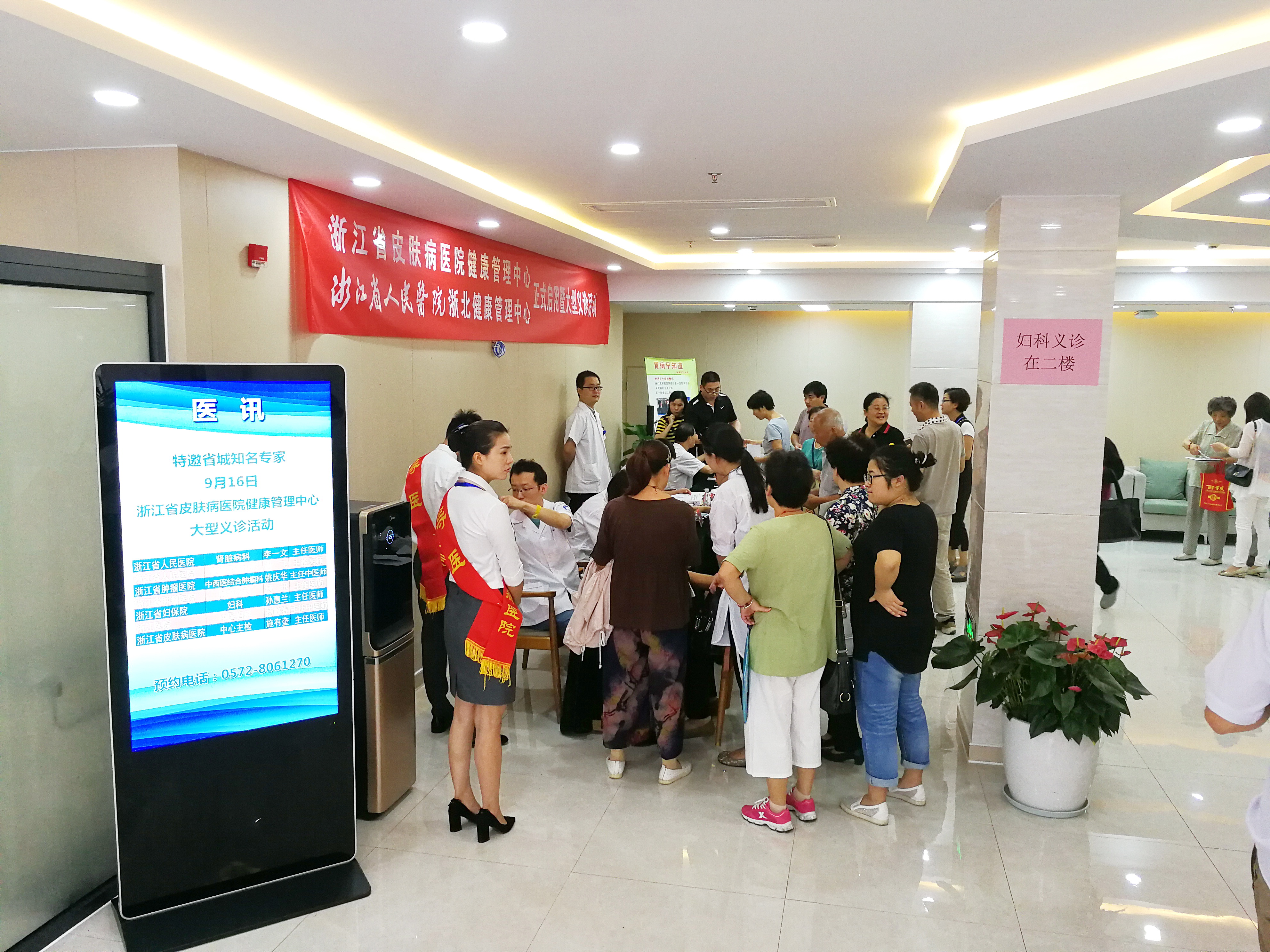 9月16日上午,为庆祝浙江省皮肤病医院健康管理中心、浙江省人民医院浙北健康管理中心正式启用,在前期向20余名省级及以上道德模范、民间设奖和德清县12个乡镇120名老党员捐赠体检套餐基础上,再次组织省级医院专家来德大型义诊,主动为德清老百姓提供专业医疗服务。义诊活动设在浙江省皮肤病医院健康管理中心一楼,邀请的省内著名专家包括肾脏病科,肿瘤外科,肿瘤中西结合科,脾胃科,妇产科,内科等,义诊活动同时还推出部分体检项目的免费检测活动。