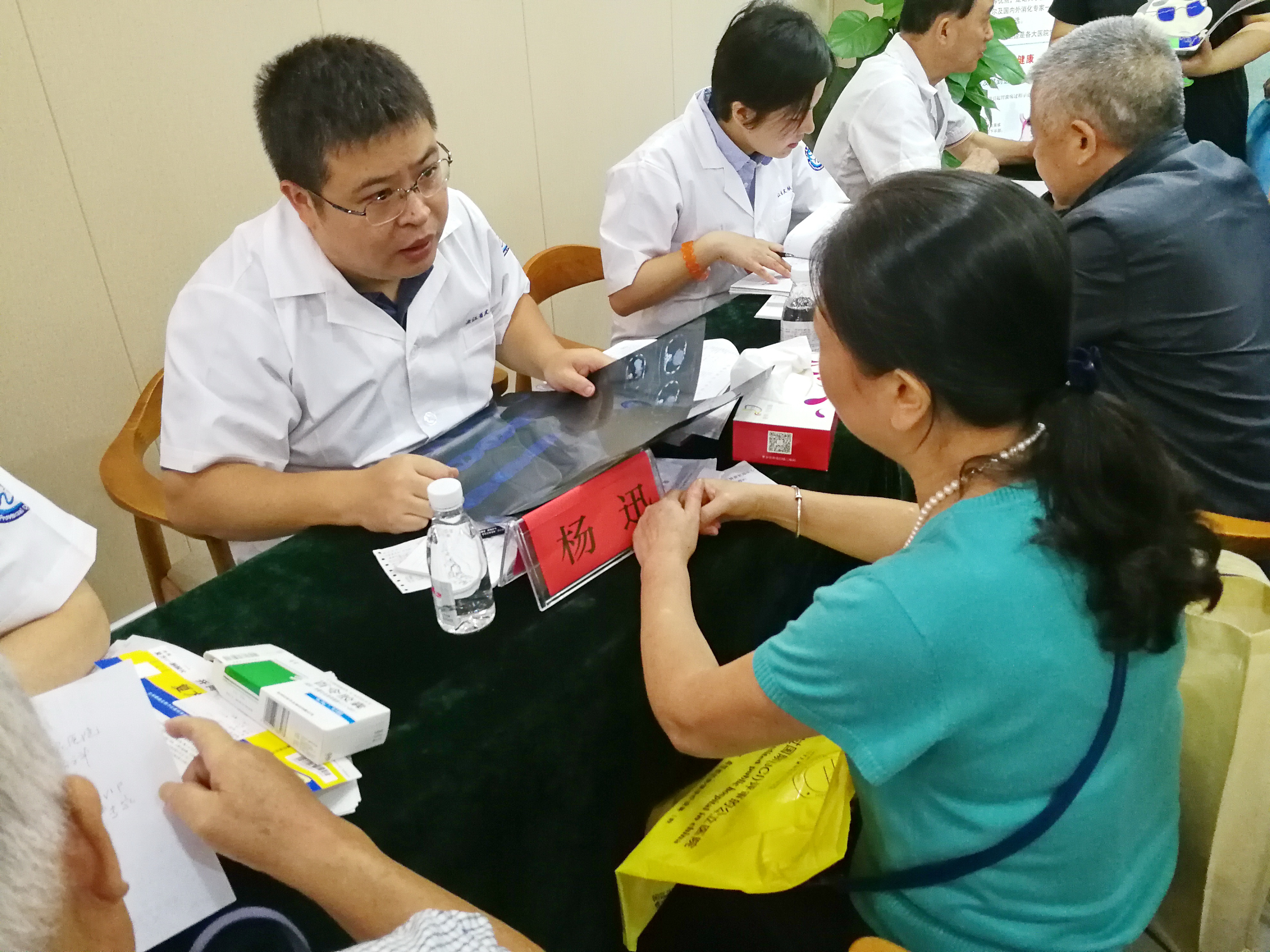在义诊活动中,省肿瘤医院胸肿瘤专家杨迅为我院的CT检查进行了读片,对其中的几位疑似病人分别作出进一步检查或做穿刺活检建议。 同时中心还特邀省人民医院健康促进中心的主检专家就体检有阳性检查结果的客户进行一对一的检后一系列服务工作:健康管理咨询、健康保健指导、后续复查预约、相应疾病后续治疗转诊通道对接等。本次义诊活动共计接受义诊100余人次,发放健康宣传资料130余份,测血压80余人次,受到了群众的热烈欢迎,取得了预期的社会效果。