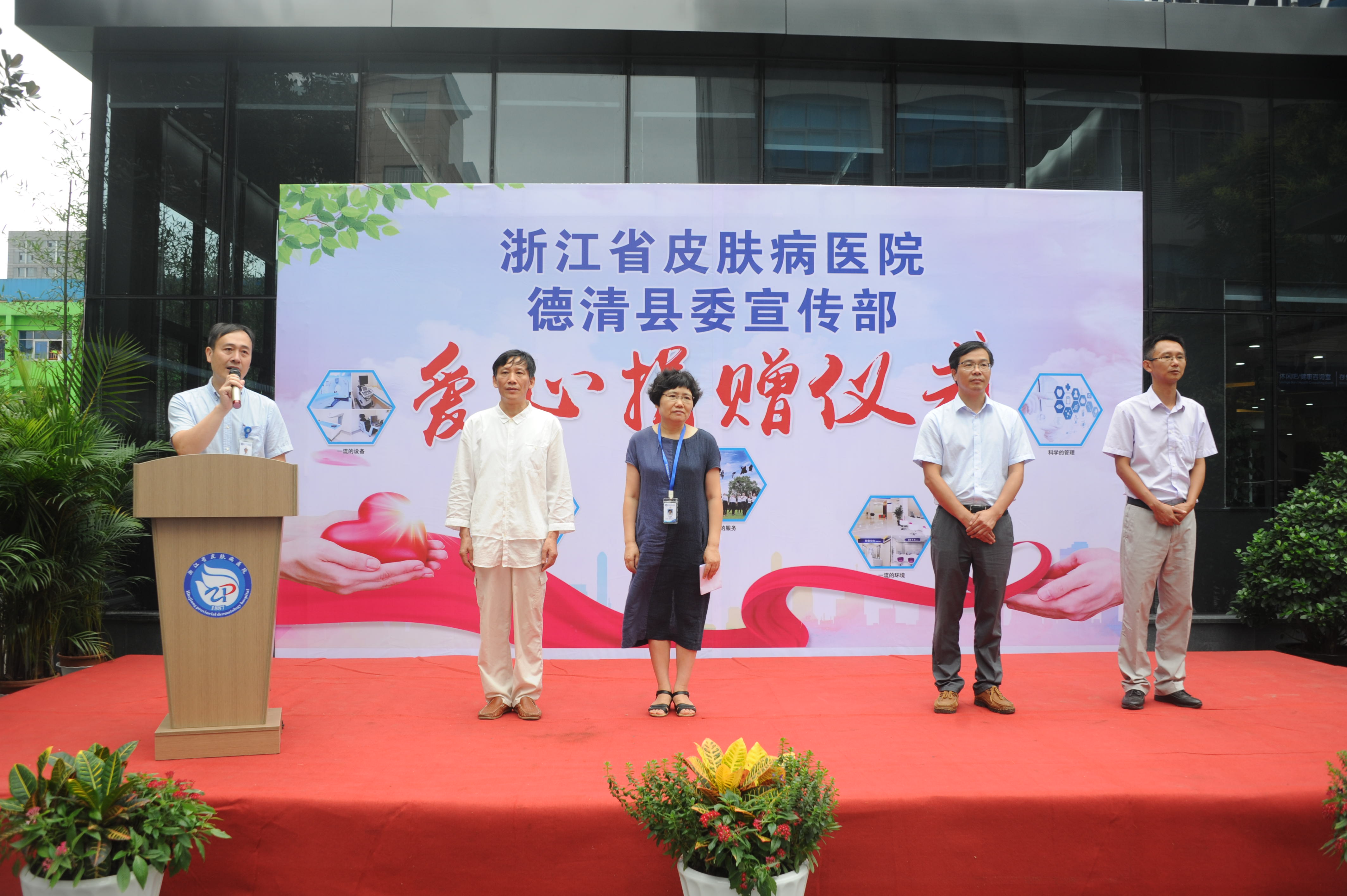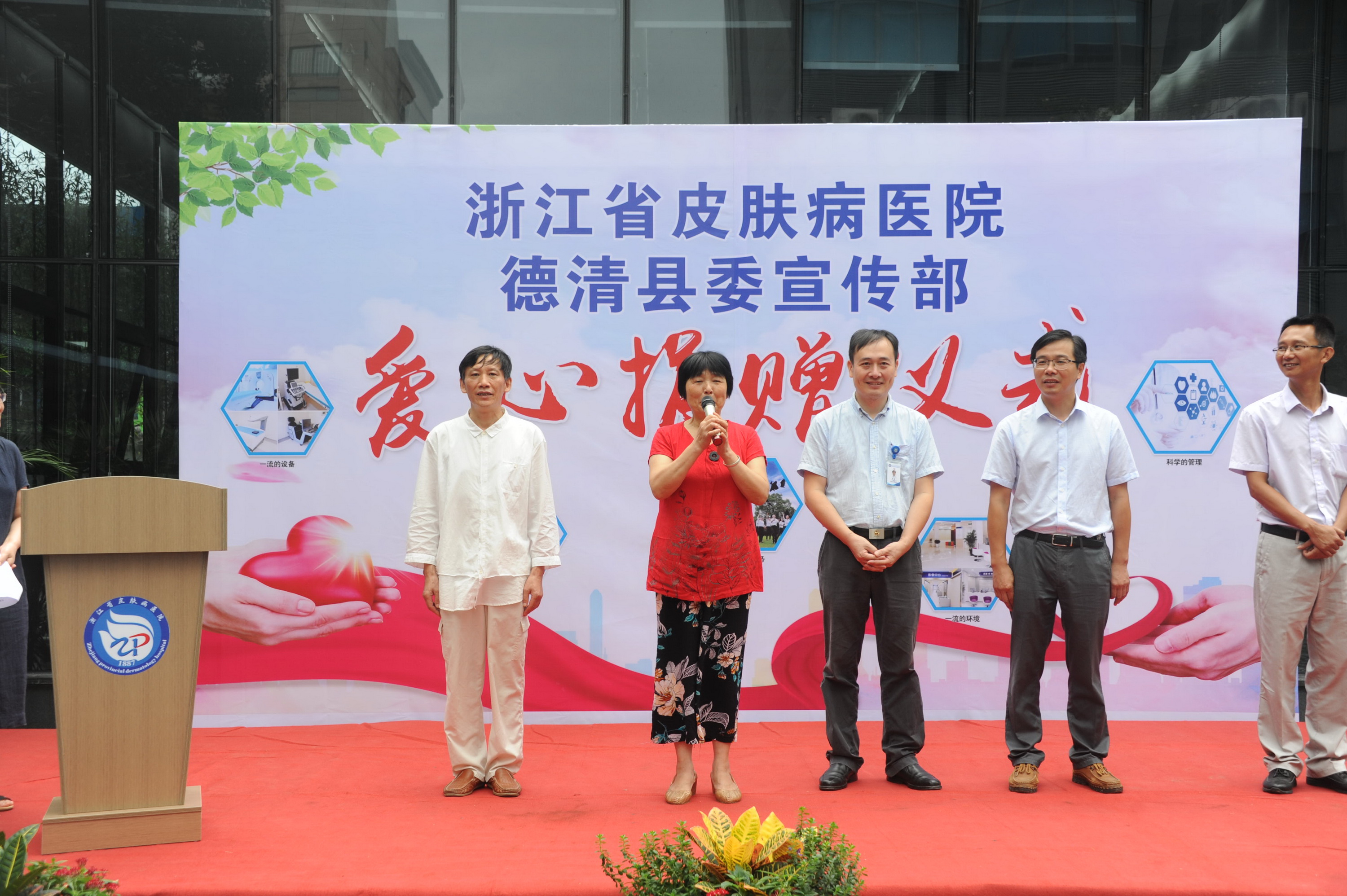 2017年9月11日,浙江省皮肤病医院与县委宣传部举行了爱心捐赠仪式。省皮肤病医院为德清县内省级及以上道德模范、民间设奖人免费提供了健康体检服务。县委宣传部副部长朱晓华、县文明办主任陈磊、副主任徐国新以及德清县内省级及以上道德模范参加了此次仪式。