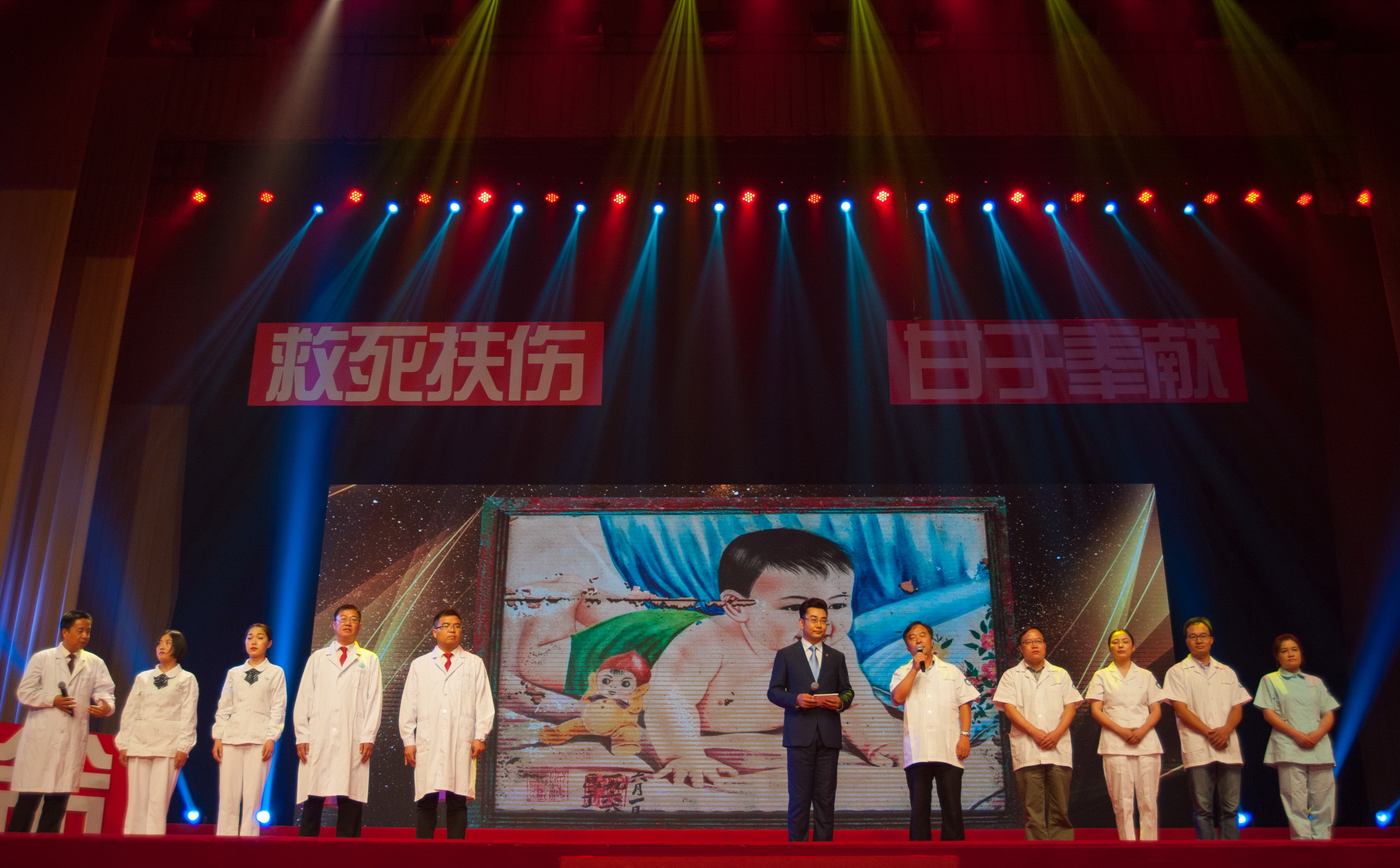 活动以一曲《我把健康托付你》开场,分为大医精诚、仁心仁术、天使关爱、大爱无疆、家国情怀5个篇章。我院上柏住院部医疗团队代表与万少华团队一同于家国情怀篇章登上舞台接受了访谈。接受访谈的有我院上柏住院部主任喻永祥、副主任王景权、护士长潘美儿、医生谭又吉和护士汪萌萌。