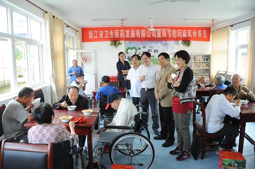 “独在异乡为异客,每逢佳节倍思亲。” 10月8日,在重阳节即将到来之际,我所领导心系麻风休养员,所长姚强、副所长沈云良与办公室及上柏住院部医务人员为麻风休养员送上了一碗碗美味的长寿面,浙江省卫生医药发展有限公司戚国辉董事长一行人为麻风休养员和上柏住院部的医务人员送上了丰富且温暖的慰问品。