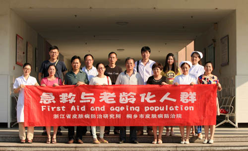 2015年9月10日,浙江省皮肤病防治研究所严丽英所长、嘉兴市疾病预防控制中心曹家穗书记和桐乡市皮肤病防治院杨松标院长率20余人红十字会员和志愿者,在桐乡市麻风村共同主办了今年的主题宣传活动。