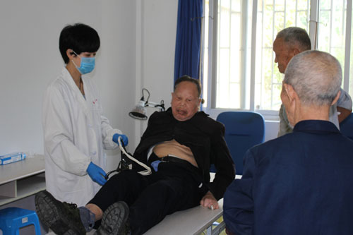 上柏住院部现在还有近80名麻风休养员,平均年龄73岁,绝大多数患有不同程度的残疾和常见老年病,为能及时发现疾病并及时治疗,一年一度的体检工作于6月12--13日如期进行。为更好地服务休养员,工作人员比平时提前了半小时上班,看到休养员们有的拄着拐杖、有的坐着轮椅次序井然的排着队伍,望着一双双期盼的眼睛,医护人员立即投入到有序的工作中。在检查过程中,休养员们互相帮忙,抱着下肢残疾者或扶着眼睛失明者;我们的医生在做好本职工作的同时,不时地把他们的轮椅固定住,让他们能稳稳地落坐;同时耐心地解答他们咨询的各个医学问题,场面很温馨。