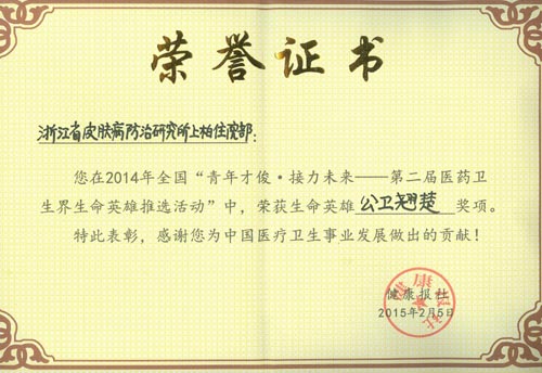 在颁奖现场,有关领导和专家认为我所上柏住院部青年医疗团队十年如一日坚守在麻风村为重症现症麻风患者和畸残康复者提供医疗、护理和康复服务,为控制浙江省麻风病的流行,消除麻风的危害,保障人民群众身体健康做出了积极的贡献。