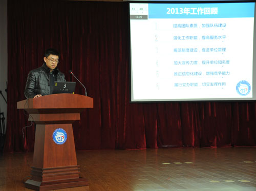 党委书记于杭跃用四个“成绩显著”对2013年工作作了概况和总结,他指出,2013年在全所干部职工的努力、理解与支持下,我所在公共卫生工作中成绩显著,在医疗卫生工作中成绩显著,在文明单位建设工作中成绩显著,在群团建设工作中成绩显著。于书记还对2014年的工作提出了要求,要求全所干部职工立足本职岗位,谦虚谨慎、扎实工作,同时还要增强廉洁意识,凝心聚力,努力取得更大的成绩。
