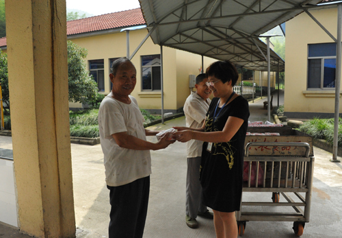 9月16日,严丽英所长、于杭跃书记、卜煜锋副所长和党委委员王晓云率相关科室人员,为上柏住院部麻风休养员送上了香甜的中秋月饼,预祝休养员们中秋节快乐。