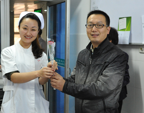 5月10日,我所所长严丽英、党委书记于跃杭、副所长卜煜锋、党委委员王晓云等领导一行一大早便向辛勤工作在护理岗位的护士们献上鲜花,提前祝白衣天使们节日快乐!表达了所领导对护士们的关怀和祝福,同时鼓励大家继续发扬南丁格尔的无私奉献和爱岗敬业精神,将微笑服务落实在每一个工作细节中。