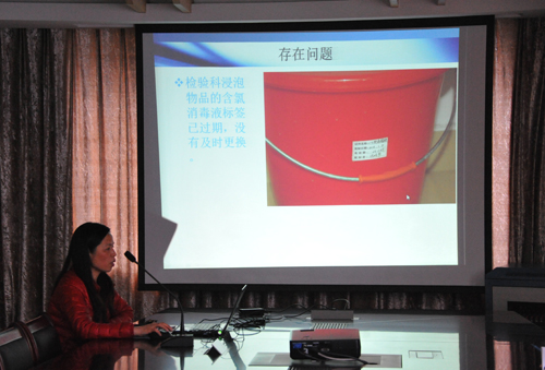 会议由感染管理科科长张跃秀主持。张跃秀科长详细总结了2013年第一季度全所医院感染管理情况,以图文并茂的形式通报了取得的成绩以及在检查和日常监测中存在的问题,并提出了整改意见。