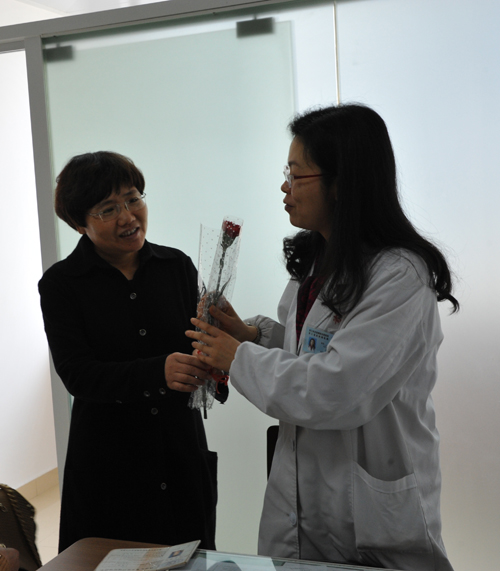 3月8日是“三八”国际妇女节 ,一大早,严丽英所长和王晓云主任就来到各科室慰问默默坚守在医疗、防治和行政工作岗位上的女职工,并一一送上鲜花,向无私奉献的全所女同胞表示衷心的感谢和祝福。
