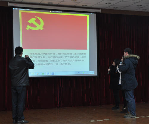 2012年,是我所各项事业取得新成就的一年,是党组织建设进一步加强的一年,有大批的团员青年积极向党组织靠拢,其中3名同志被光荣地吸收为中共预备党员。会上,三名新党员进行了入党宣誓,于杭跃书记领誓。
