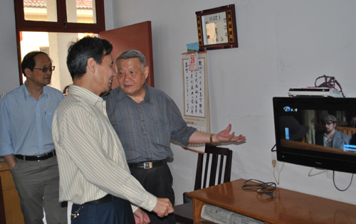 戴志澄司长一行在所领导的陪同下,参观了我所上柏住院部,深入病区与麻风休养员亲切交谈。戴志澄司长对麻风村的基础设施、配套设施、病人的生活设施以及管理模式给予高度评价。戴志澄司长曾于八十年代到过我所,此次时隔二十年之行,不禁惊叹麻风休养员医疗、生活条件的改善和麻风村规范化管理的巨大变化,由衷赞叹浙江省麻风病防治事业所取得的成就。