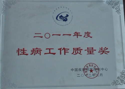 我所荣获全国2011年度“性病工作质量奖”(图)..