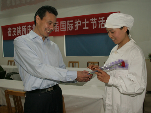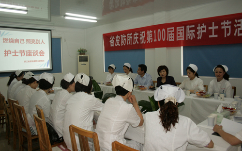 下午,所领导与全体护士座谈。座谈前上柏住院部护士长潘美儿介绍了南丁格尔生平事迹,内容丰富、事迹感人。座谈会上施培武所长例举了南丁格尔生前的具体感人事例,生动风趣,提出了“善良、执着、奉献”的南丁格尔精神,并要求全体护士要发扬“四心”,不断改善服务态度;加强学习,不断提高自己的业务水平;增强团结,不断巩固和谐局面;勇于创新,不断推进单位建设。会上,严丽英书记号召全体护士学习南丁格尔精神,希望大家通过平凡的护理岗位特别是麻风护理岗位奉献爱心。全体护士齐唱《中国护士之歌》,在激昂的歌声中,倍受鼓舞,大家表示,一定按照所领导的要求,自觉学习,认真工作,结合我所开展的优质护理服务活动,立足本职岗位,把各项工作做得更好。